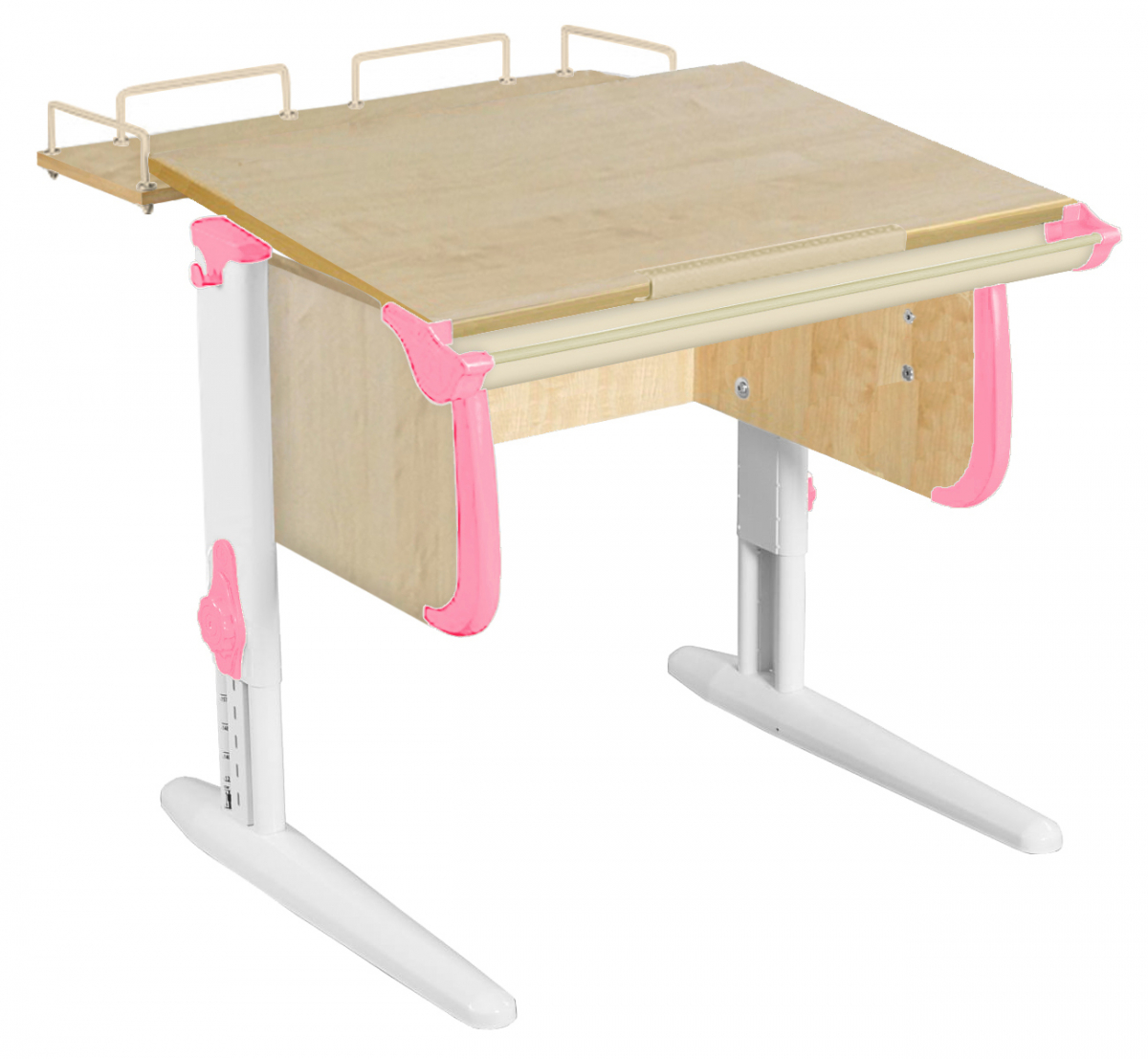 Парта Дэми СУТ-24-01 75см с задней приставкой клен/розовый/белые ноги