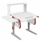 Парта Дэми СУТ-24-02Д 75см с надстройкой и боковой приставкой белый/красный/серые ноги